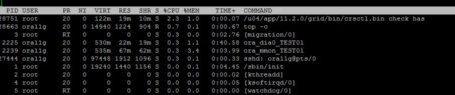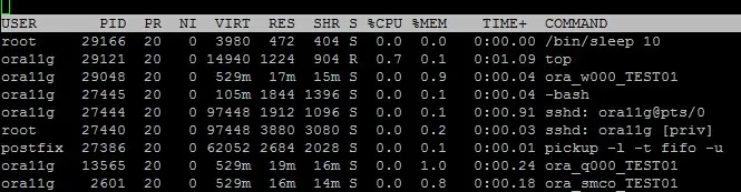 如果数据库系统中存在着cpu或者内存的过度使用,或者说IO等待较高,都可以通过top命令进行一个快速的定位到系统进程信息,然后从系统级和数据库级的进程进行一个映射,从而得到数据库级的进程信息,定位可能存在的问题。