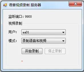 (3)在服务端界面上,选择一个在线的用户,点击“开始录制”按钮,即可进行录制。录制结束后,将在服务端的运行目录下,生成以用户ID为名称的mp3/mp4文件。