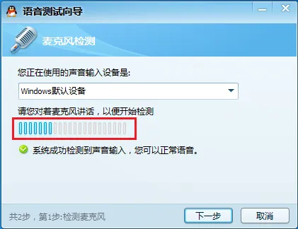 使用 摄像头、麦克风、扬声器测试程序 一文中提到的技术,我们可以基本实现QQ的语音视频测试向导的功能了。但是,我觉得语音测试这块的体验还可以做得更好一点,就像QQ语音测试一样,实时显示麦克风采集到的声音的强度: