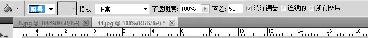 7.魔术棒工具:选择颜色相近的连续的一大片,一般用于颜色较单调的图像的选择。