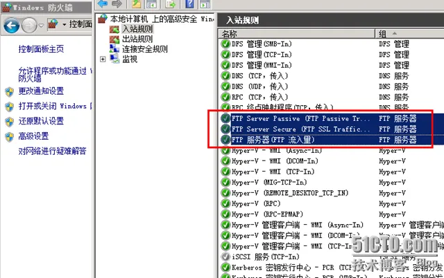 - 允许匿名等,根据需要进行设置,然后设置防火墙,添加 预定义FTP,会自动生成3条规则: