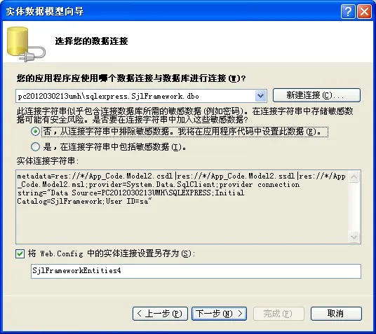 总结:选择“是”时,连接字符串的密码会暴露出来,“否”的时候密码而不会明文显示出来,故连字符串是错误的,运行程序的时候出现“基础提供程序在 Open 上失败。”。