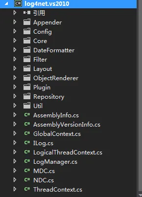log4net开源项目结构如图所示: