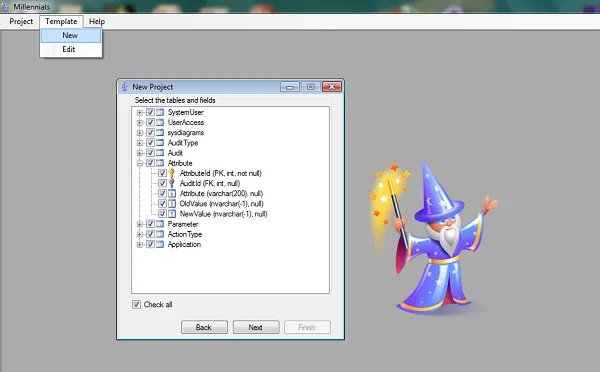 Millennials 是一个可定制的 C# 代码生成工具,支持 MVC 和三层架构、ADO.NET、Nhibernate 和 LINQ。