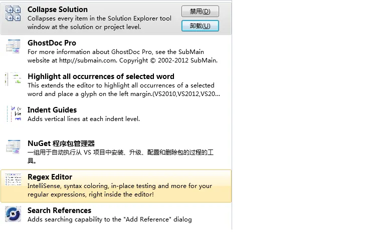 下图是本人常用的visual stuido开发工具插件。
