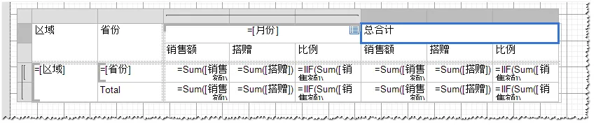 4. 列使用“月份”分组,分组下面嵌套三列。