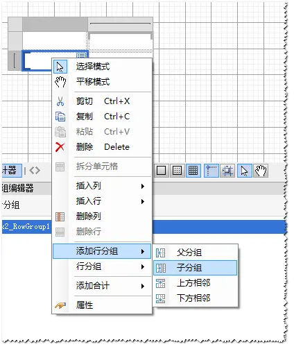 选中,行分组单元格,右击添加行分组,选择“子分组”