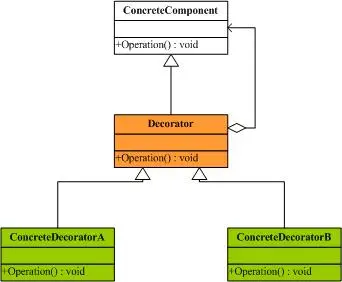 现在对于每个扩展的功能,都增加一个包装类的子类,让它们来实现具体的扩展功能,如下图中绿色的区域:
