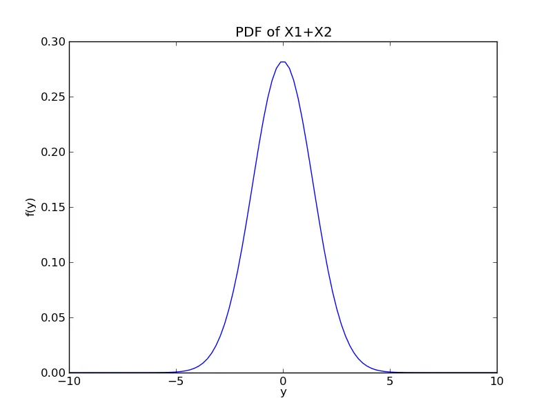 (我们也可以利用解析的方法,推导出f(y)满足分布[$N(0, \sqrt{2})$]。如果有微积分基础,可以将此作为练习。)