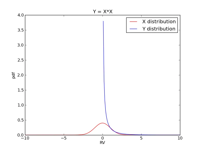 如果有函数关系[$ Y = X^2 $], 而X满足下面的分布: