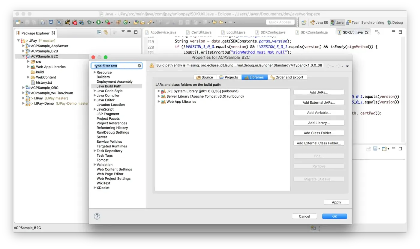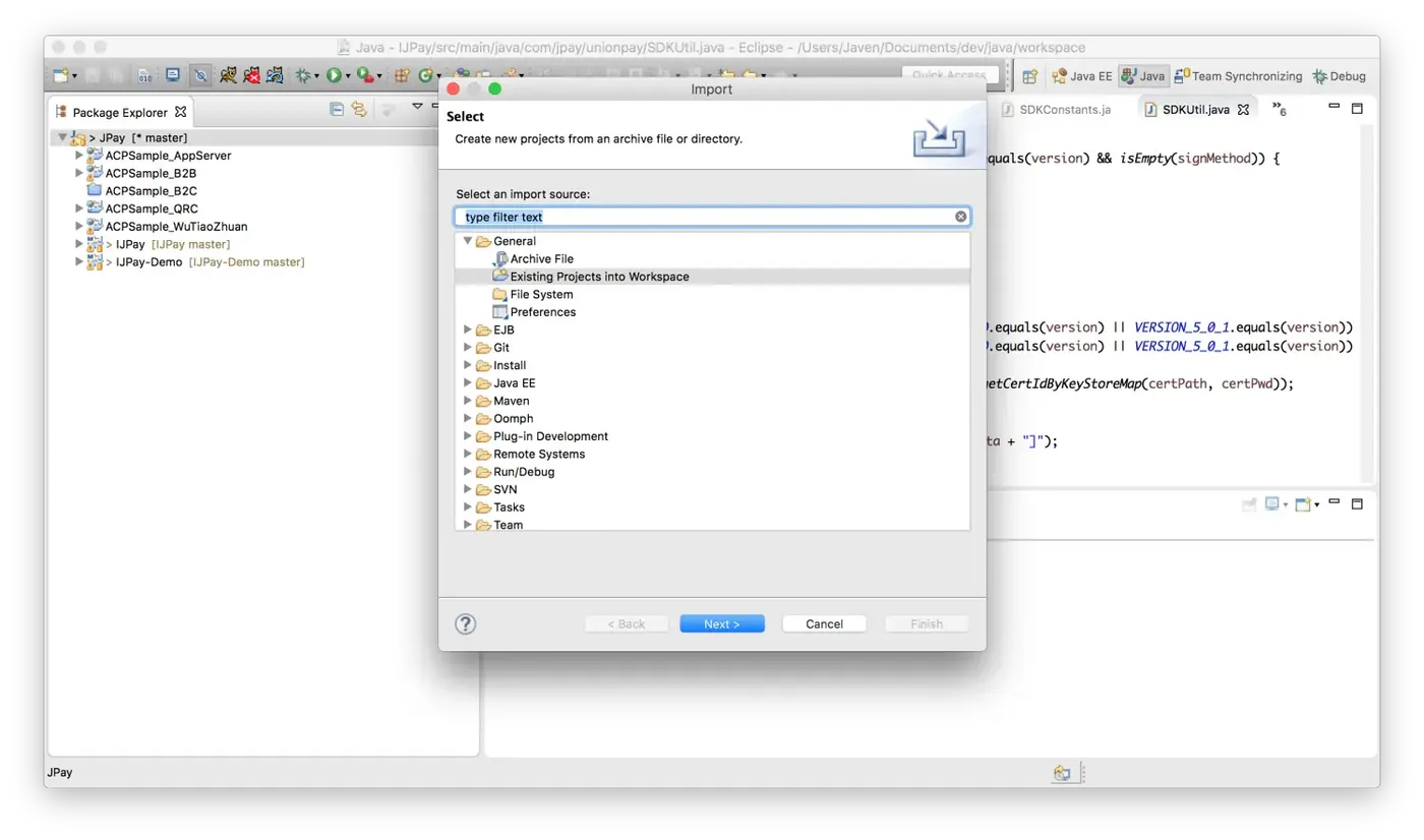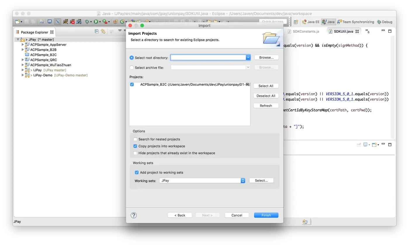 这里将Java的实例ACPSample_B2C导入到Eclipse。