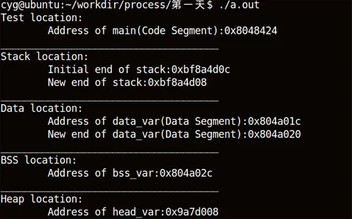 printf("\tAddress of bss_var:%p\n",&bss_var);