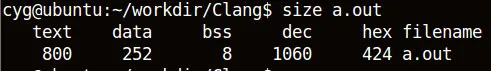 用命令size a.out会得到: