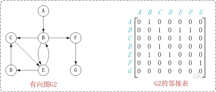例如,上面有向图G2中的B和E是邻接点;<B,E>是B的出边,还是E的入边。