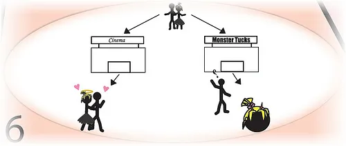 约会中,线框图就好像是夜晚时候的安排。例如:情侣选择看电影,那么在影院总要坐在一起吧,视角也要选好。它更重视约会计划中优先级和重要性来做选择。