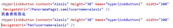 6. Windows Phone 7 页面导航支持使用别名,使用方法如下: