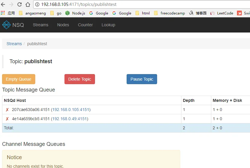 到了这一步就可以写代码发送和接收信息了。但是还有一个管理系统需要启动一下。nsqadmin
