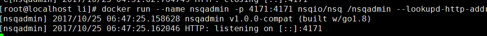 docker run --name nsqadmin -p 4171:4171 nsqio/nsq /nsqadmin --lookupd-http-address=192.168.0.105:4161