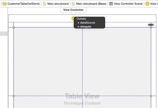 1. 在main.storyboard上拖放一个uitableview,并在后台代码建立输出联接