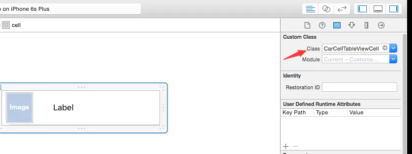 新建一个xib文件 carTblCell,拖放一个UITableViewCell,再拖放一个图片和一个文本框到tableviewcell上