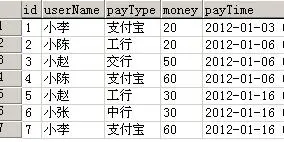 12 insert into PayPhoneMoney values('小李','支付宝',20,'2012-01-03')