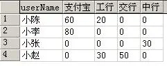 4 sum(case payType when '支付宝' then money else 0 end) as 支付宝 ,