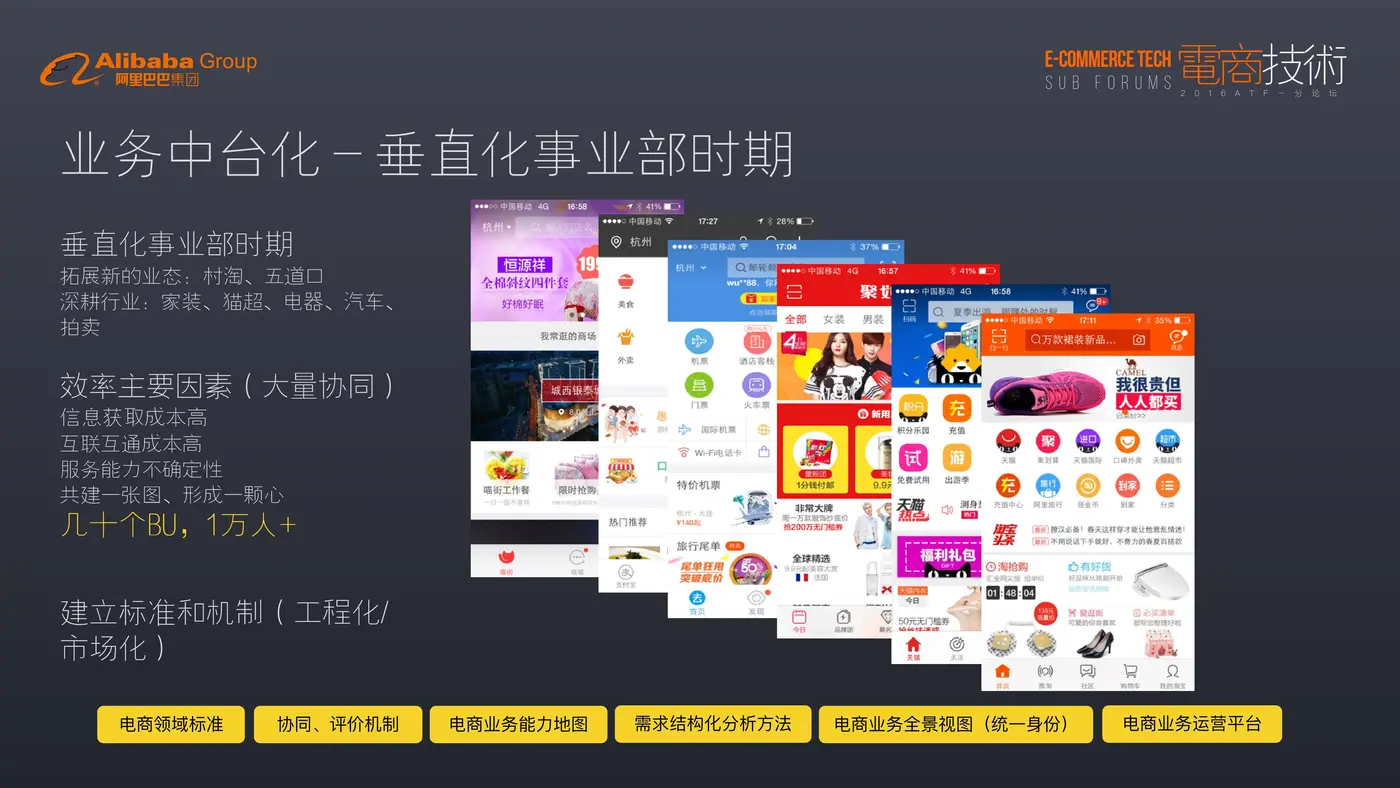 2016 ATF阿里技术论坛于4月15日在清华大学举办,主旨是阐述阿里对世界创新做出的贡献。会上阿里业务平台事业部&淘宝基础平台技术部负责人玄难阐释了淘宝经历13年的发展中,业务平台从零到有,同时又逐步演进为业务中台。而中台的概念是阿里巴巴在2015年12月提出,并且按照“大中台、小前台”理念进行组织升级,旨在建设“敏捷的前端+强大的中台”,降低整个集团的创新成本,适应新时期的发展。