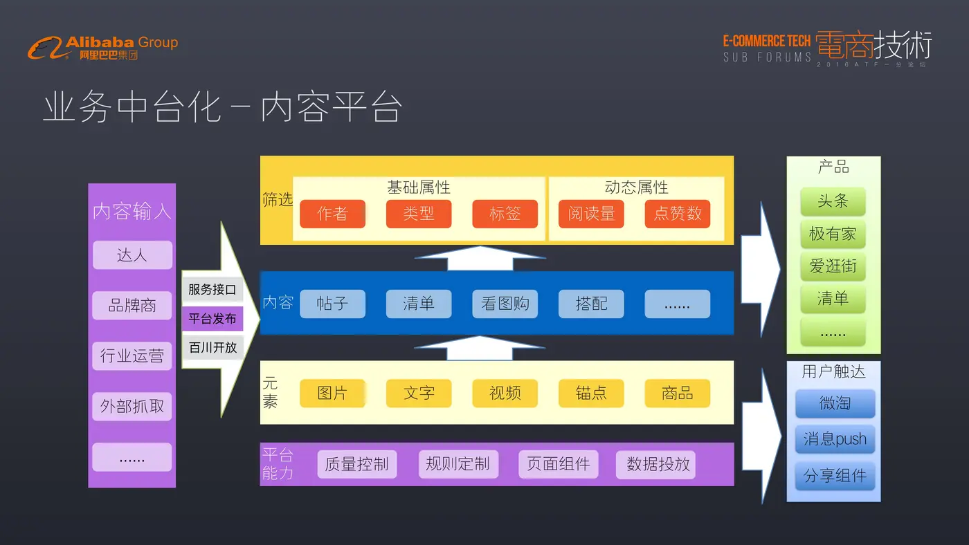 淘宝今年业务方向是内容化,社区化、本地服务化。我们需要为淘宝网未来5年的业务升级搭建新的基础设施,新的业务平台。像这个内容平台就是其中的一个,需要能同时支持所有业务的内容生产、内容管控、内容的检索、内容的组织等等。