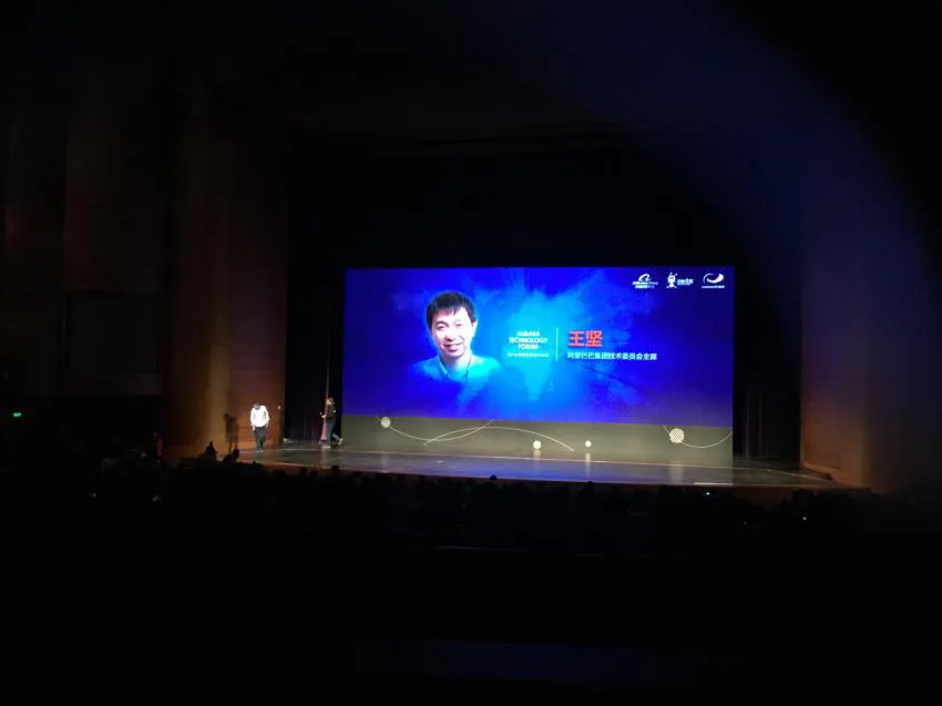 从进入会场的第一瞬间,我就感觉自己像是进入了一场技术的演唱会。如果只能用一个词来形容这次主论坛的感觉,我会选择震撼。第一演讲嘉宾团队震撼,主论坛演讲嘉宾包括阿里巴巴集团技术委员会主席王坚,阿里巴巴集团首席技术官(CTO)张建锋,阿里巴巴集团首席风险官(CRO)刘振飞,蚂蚁金服首席技术官(CTO)程立,清一色的阿里技术担当;第二数字震撼,14万笔/秒订单创建峰值、8.59万笔/秒支付峰值、214个国家消费者同时下单、912.17亿、3万个电话等等,各种数字疯狂的向我砸来,深深地感到震撼。第三现场震撼,感谢清华学堂的给此次主论坛提供了一个完美的展示空间,完美的灯光效果配合完美的声音效果,将阿里的制作视频最大效果的展现给了我们。