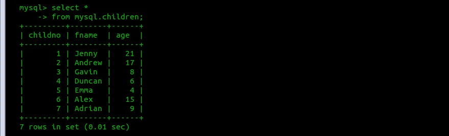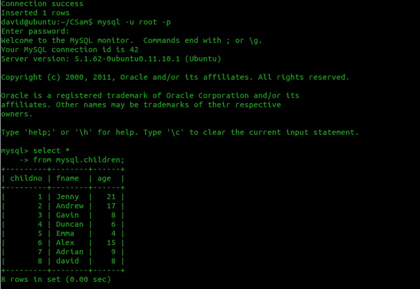 res = mysql_query(&my_connection, " INSERT INTO children(fname, age) VALUES('david', 8) ");