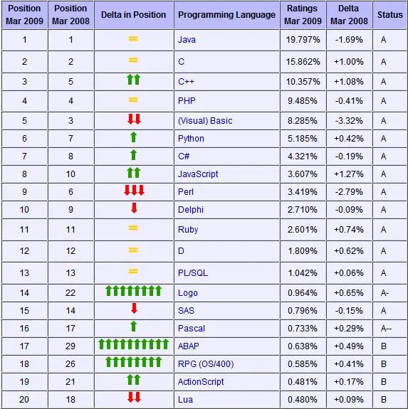 的战场.目前Java暂时在数量和排名上处于领先,未来怎样还不知道.