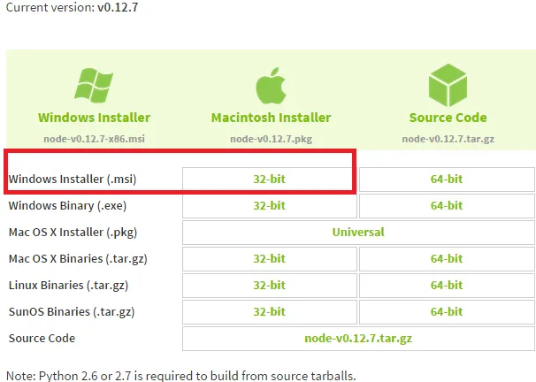 1、到官网下载node.js:https://nodejs.org/download/