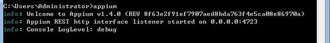 使用npm安装appium。 在cmd使用命令npm install –g appium 下在appium(整个过程较慢,请耐心等待)安装成功后,在cmd输入appium出现以下信息表明安装成功。