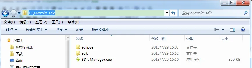 2、解压下载下来的文件,尽量不要解压到带有中文路径的文件目录下,目录也不要过深,我的目录为:D:\android-sdk