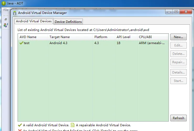 Tips:可在cmd命令行窗口输入:android avd 打开Android Virtual Device Manager