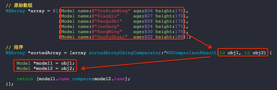 用block对Model排序一样非常简单直白暴力,只需用Model接收对象就可以了.