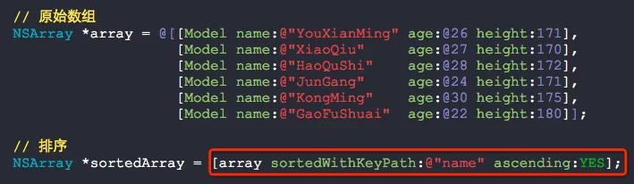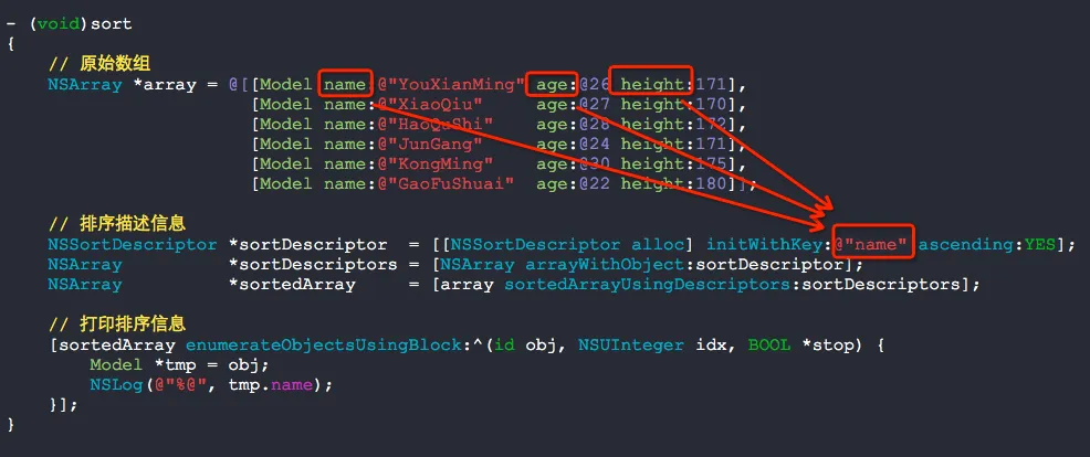 看下图,其实呢,NSSortDescriptor只是一个获取keyPath的工具,他能根据keyPath进行排序而已,仅此而已:)