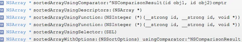 最麻烦的是sortedArrayUsingSelector:,其次是sortedArrayUsingDescriptors:,最容易使用的就是sortedArrayUsingComparator: