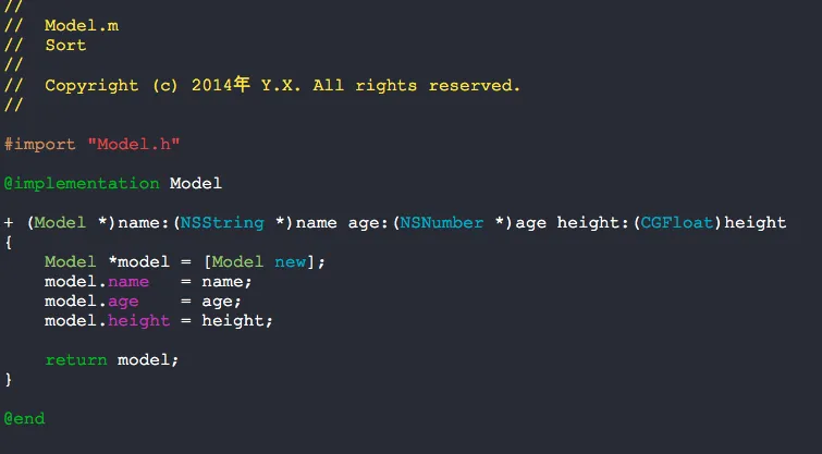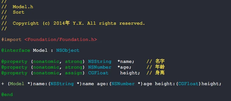 sortedArrayUsingDescriptors:一般用来给Model进行排序,block也能对Model进行排序.先给出Model的定义(看教程不要太懒,自己敲代码吧)