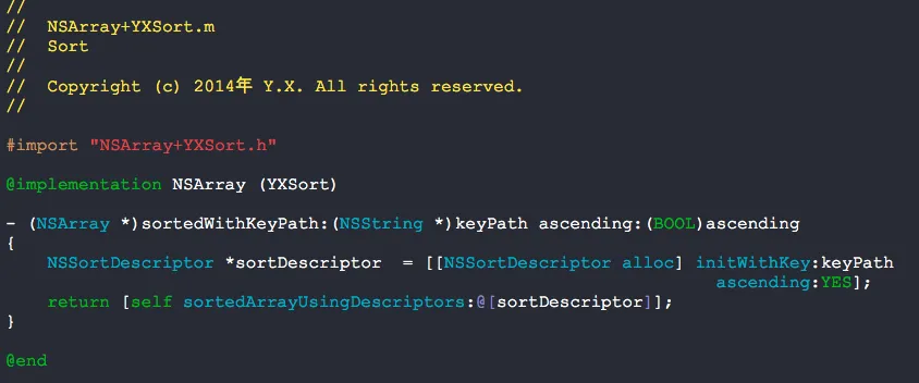 第三种方法sortedArrayUsingSelector:,也许是你最常用的方法,这个我就不讲了,我觉得太麻烦了,还得另外写一个比较的方法......