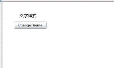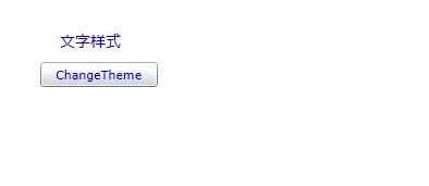 <UserControl x:Class="SilverlightChangeTheme.MainPage" xmlns="http://schemas.microsoft.com/winfx/2006/xaml/presentation" xmlns:x="http://schemas.microsoft.com/winfx/2006/xaml" xmlns:d="http://schemas.microsoft.com/expression/blend/2008" xmlns:mc="http://schemas.openxmlformats.org/markup-compatibility/2006" mc:Ignorable="d" d:DesignHeight="300" d:DesignWidth="400"> <Grid x:Name="LayoutRoot" Background="White"> <Button Content="ChangeTheme" Height="23" HorizontalAlignment="Left" Margin="40,66,0,0" Name="button1" VerticalAlignment="Top" Width="108" Click="button1_Click" Style="{StaticResource BtnStyle}" /> <TextBlock Height="23" HorizontalAlignment="Left" Margin="58,37,0,0" Name="textBlock1" Text="文字样式" VerticalAlignment="Top" FontSize="14" Width="101" Style="{StaticResource txtStyle}" /> </Grid> </UserControl>