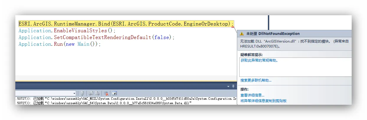 无法加载Dll”ArcGISVersion.dll”:0x8007007E