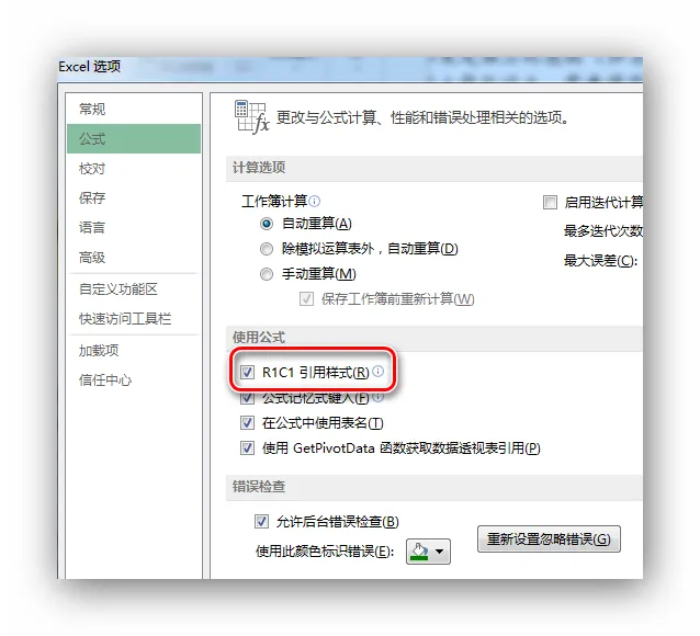 在Excel选项中,有R1C1引用样式,勾选即可。