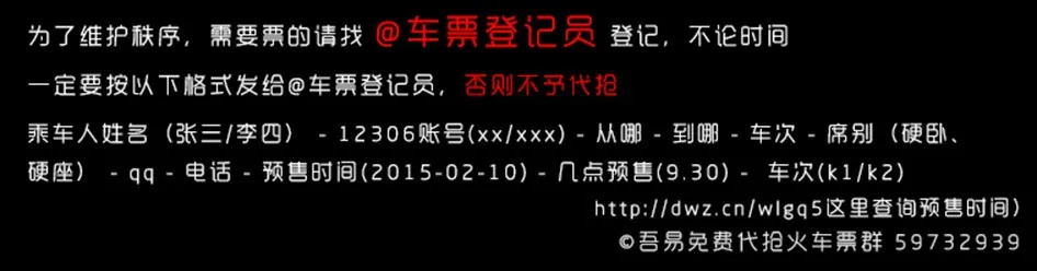 2. 虽然吾易买不起,但它有一个免费帮大家抢的群:吾易免费代抢火车票 59732939,只要按要求登记就可以免费帮助大家抢票。