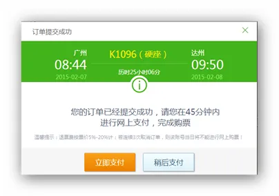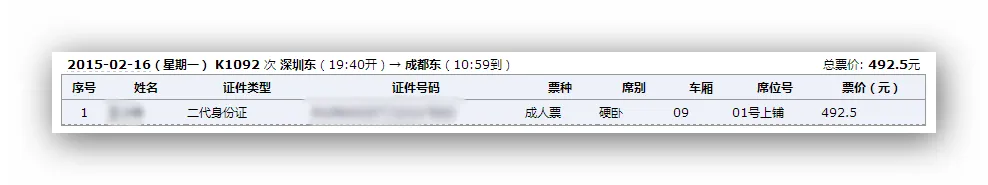刷2月16号得K1092硬卧一张,但由于是16号的,回来都过年了,最后取消了订单。