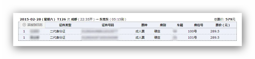 1.心蓝软件昨天帮我捡了一张广州到成都(T192)硬卧;今天上午又帮我捡了两张东莞东到成都(K1092)硬座。