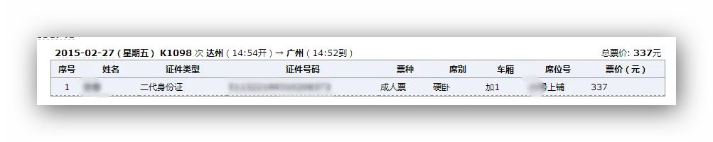 今天突然放了一些加车的硬卧,顺利抢得今年最后一张票。
