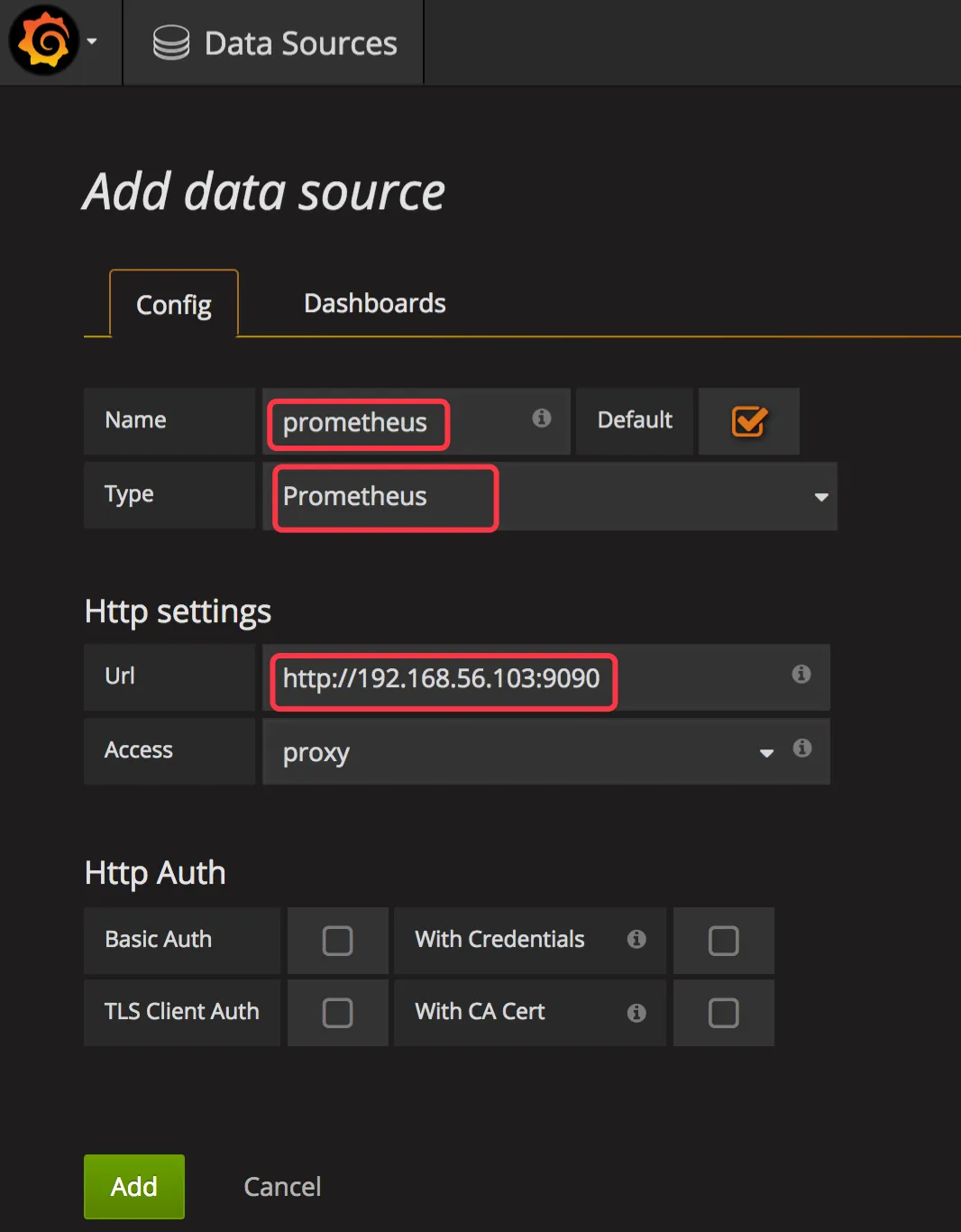 输入 Prometheus Server 的地址 http://192.168.56.103:9090