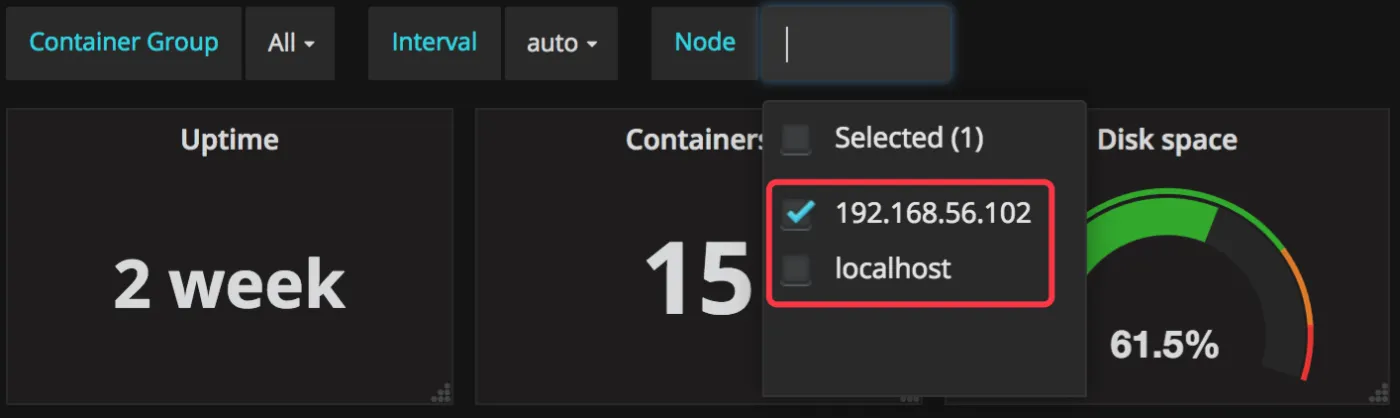 在这个 Dashboard 中,上部分是 host 的数据,我们可以通过 Node