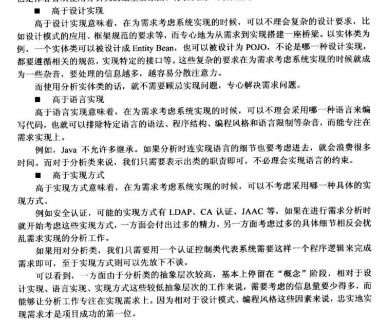 ---->分析类是从业务需求向系统设计转化过程中最为主要的元素。他们在高层次抽象出系统的实现业务需求的原型。业务需求通过分析类被逻辑化,成为可以被计算机理解的语意。分析类的抽象层次有三高的特点,正是因为这些特点,让分析类成为比设计类“更好用”的元素,也是作者喜欢使用分析类的最重要的原因。分析类的三高分别是: